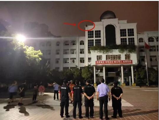 接到指令后,太和县公安局城南派出所、巡防大队、消防大队先后到达现场。发现一名男子在事发教学楼楼顶左右徘徊,大喊大叫,时哭时笑,情绪很不稳定,随时可能发生意外。