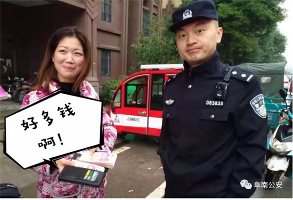 11月7日清晨6时左右,阜南县城北派出所接到群众报警:“警察同志,我捡到一个钱包,里面有好多现金,我不敢动你们快来看看啊。”